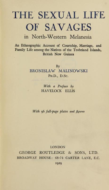 Dwa lata później opublikował monografię Życie seksualne dzikich w północno-zachodniej Melanezji.