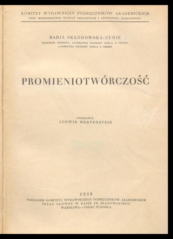 W tym miejscu warto dodać, że Wertenstein był także tłumaczem zagranicznej literatury naukowej. Najważniejszą spośród przełożonych przez niego prac było dzieło Marii Skłodowskiej-Curie pt. Radioactivité (Promieniotwórczość). Książka ukazała się już podczas okupacji i stała się podręcznikiem na tajnych kompletach.